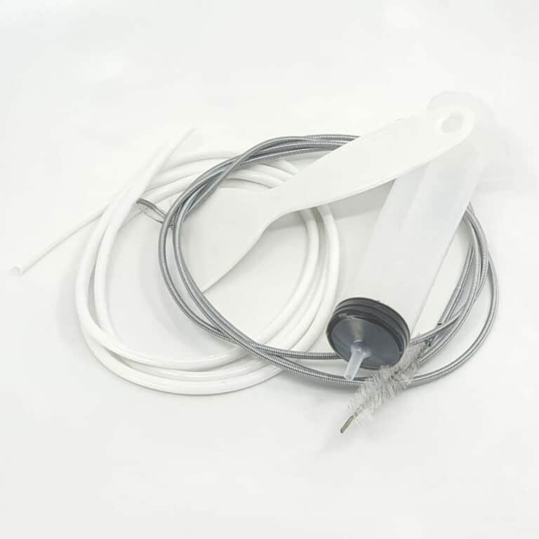 - Elastyczna rurka do czyszczenia – Wykonana z wytrzymałej stali sprężynowej, aby łatwo dotrzeć do węższych kanałów odpływowych.