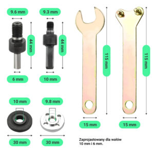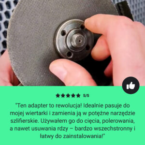 To dość proste urządzenie, ale bardzo praktyczne. Można go używać do mocowania tarcz szlifierskich na przenośnej wiertarce. Adapter jest solidny i z łatwością znosi zużycie. Zestaw zawiera szczegółową instrukcję oraz klucze potrzebne do szybkiego montażu i wymiany tarcz.
