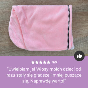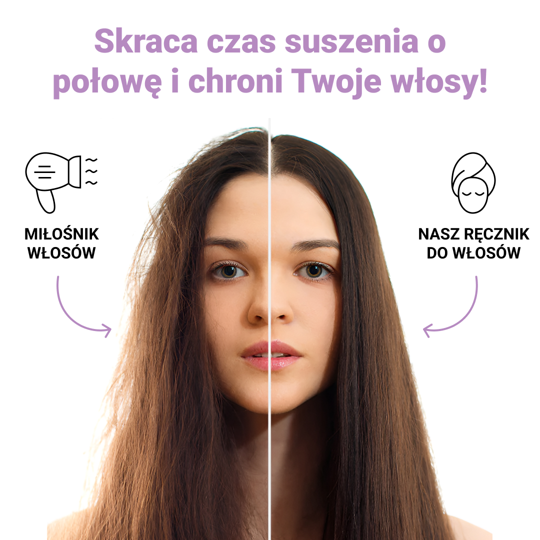 „W końcu ręcznik, który naprawdę suszy! Moje włosy są bardziej miękkie i mniej zniszczone.”