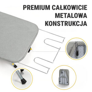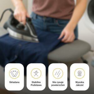 - Stabilna i bezpieczna – Metalowa konstrukcja zapewnia stabilność podczas prasowania.