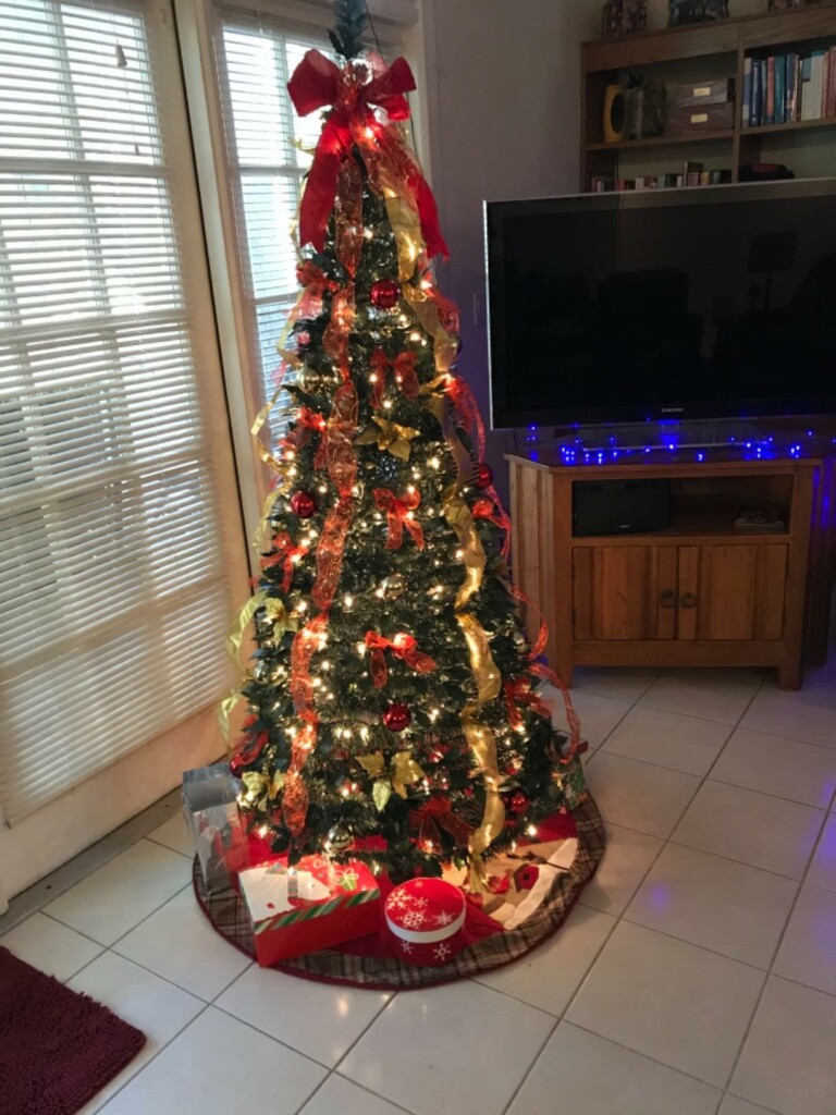 Okej, więc jestem starszy (nienawidzę mówić starszy) i każdego roku wyciągałem nieporęczną, DUŻĄ, sztuczną choinkę i spędzałem godziny dekorując ją samemu (bez dzieci, bez pomocy). Światełka w końcu przestały działać, więc musiałam też dodać lampki na sznurku. Potem zobaczyłam tę wyskakującą choinkę i postanowiłem spróbować czegoś prostszego i mniej skomplikowanego. I szczerze mówiąc, uwielbiam ją. Zajęło mi dwie próby, aby zrobić to poprawnie i spędziłam tylko dziesięć minut na wiązaniu kokardek i wstążek i… wow! Stoi, jest piękna i nie mógłbym być szczęśliwszy. Światełka naprawdę ją ożywiają, a pod spodem jest mnóstwo miejsca na małe prezenty, co jest dodatkowym plusem. Użyłem mojej zwykłej osłony na choinkę, która sprawdziła się idealnie. Nie sądzę, że utrzymałaby ciężką ozdobę choinkową, ale szczerze mówiąc, nie obchodzi mnie to. Duża, piękna kokarda ma klasę i łatwo ją upiąć, aby zaakcentować czubek. Chociaż cena trochę mnie odstraszała, teraz uważam, że jest tego warta. Pudełko, w którym została dostarczona, jest idealne do jej przechowywania. Polecam tę choinkę każdemu, kto jest zmęczony spędzaniem godzin na rozstawianiu choinki, a następnie godzinami na jej zdejmowaniu.